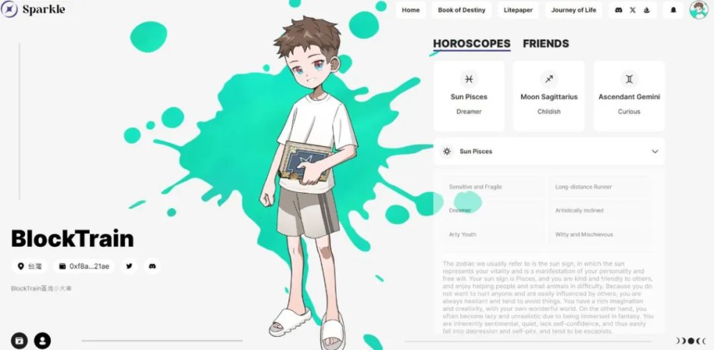 Sparkle 是一款 Web 3 占星应用程序,内置由 AI 和区块链支持的 GameFi 和 SocialFi 元素。以占星玩法为主,用虚拟资产和游戏代币$SBT奖励玩家参与:通过 Sparkle NFT 提供独家访问权限,玩家将被赋予平台所有权和专属权益;NFT具有不同稀有性和价值,且可升级。目前为止项目还在早期阶段。