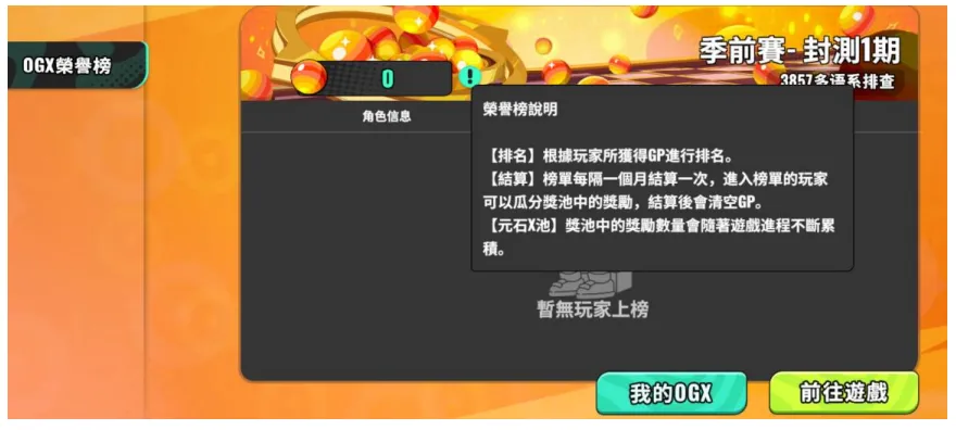 - 夺宝派对(上帝模式)可于OGX 荣誉榜每月瓜分元石X 奖池