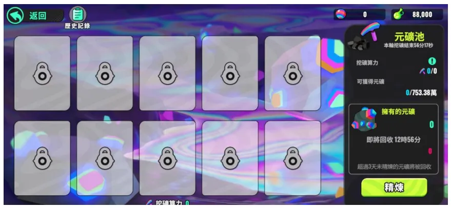 - 透过原矿池放入英雄SKIN 进行挖元石矿(稀有度不同挖矿速率不同)