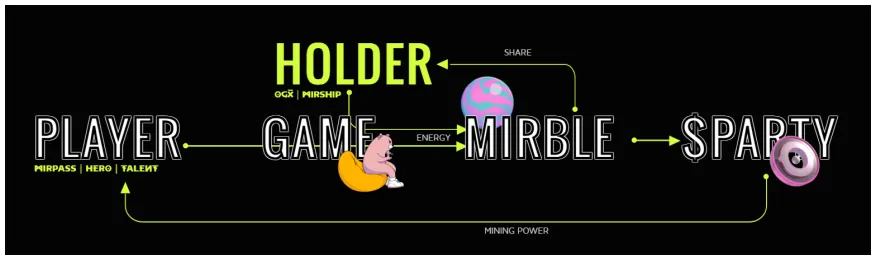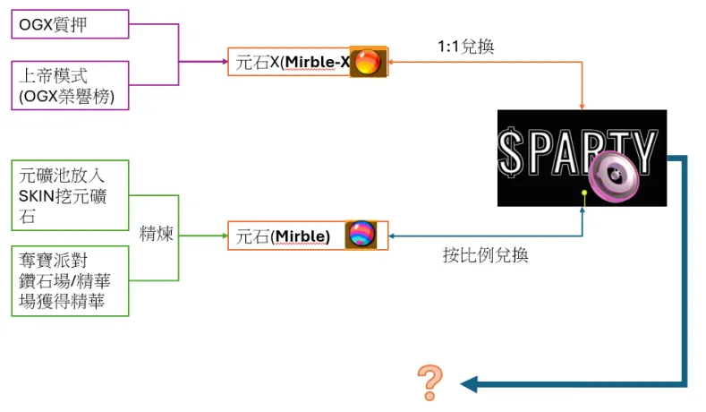 - 元石(Mirble):元石分为元石/元石X,为派对宇宙的实用代币,可按不同比例换取$PARTY(后详) 元石X(Mirble-X)只能透过OGX 质押跟上帝排行榜获得,可1:1兑换成元石(Mirble)元石(Mirble)透过参与核心玩法获得(下面会说明)
