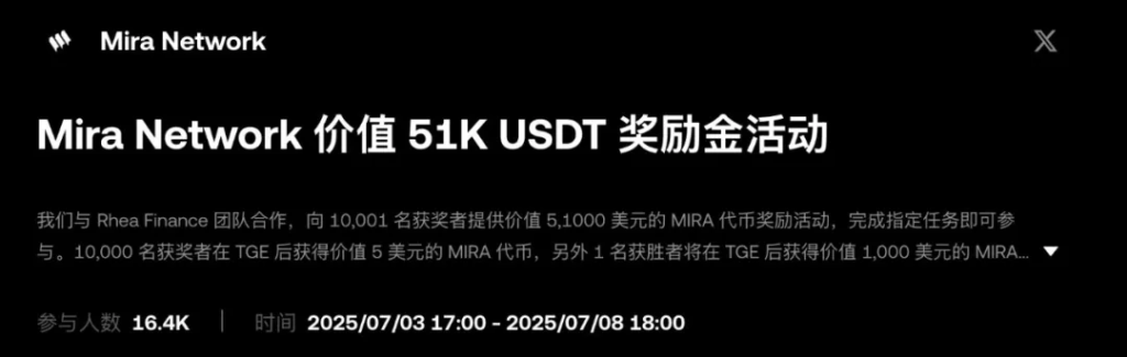 - 奖励发放时机:所有奖励将在 MIRA 代币正式 TGE 后发放。
