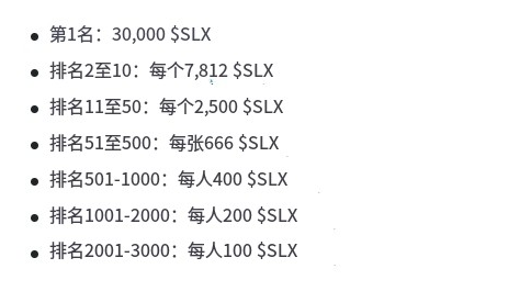 新赛季带来了焕然一新的排行榜分组、全新任务,并继续与 Immutable Play 平台整合,玩家可以在该平台上提升排名,赢取代币奖励。整个赛季排名前 3000 的玩家将瓜分总计 100 万枚 $SLX 代币,分配方式如下: