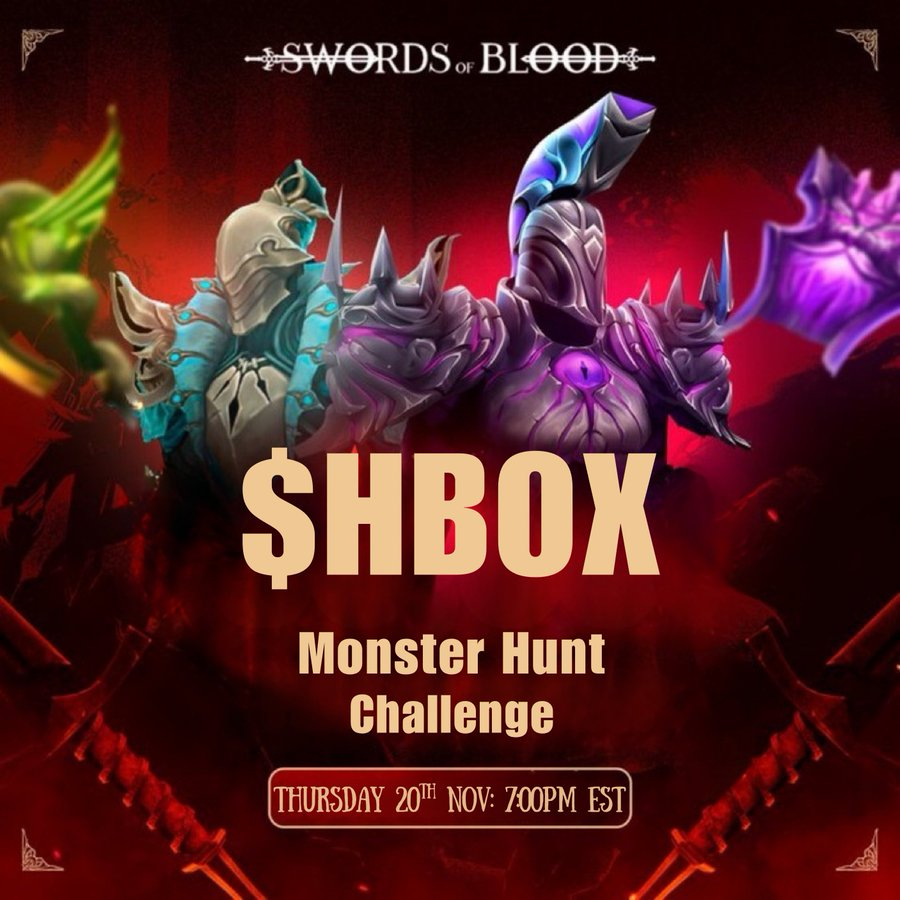 除了在 Coinstore 上架外,团队还宣布了一项为期 24 小时的怪物狩猎排行榜挑战赛。该挑战赛将于美国东部时间晚上 7 点(与上架日期相同)开始,参赛费用为 2000 $HBOX。所有参赛费用将直接进入奖池,获胜者将有机会获得排行榜奖励、随机抽奖以及 NFT 奖励,奖励形式包括金币、宝石和其他游戏内资产。