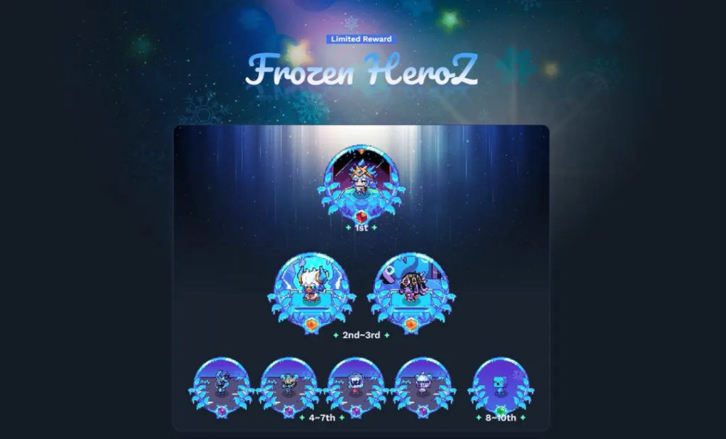 还引入了一种新型游戏内资产:冰封竞技场英雄Z。这些特殊的NFT角色会根据游戏积分排名前十的公会获得奖励。这些NFT可以交易,并且可以用作游戏预设。