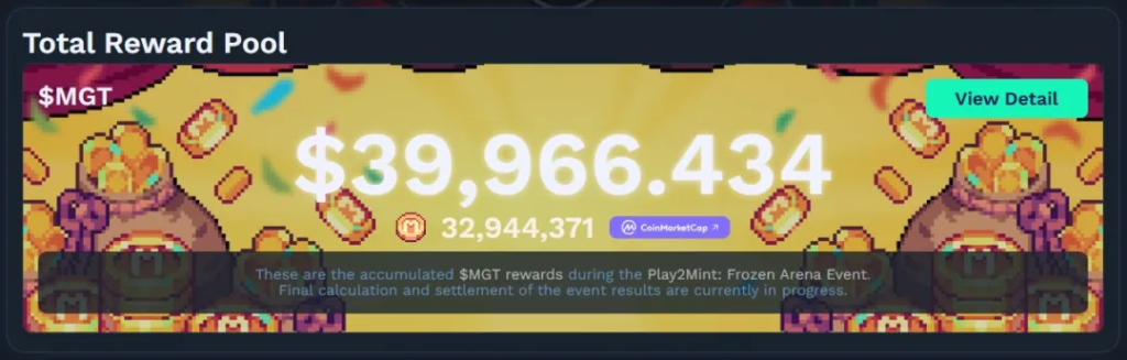 冰雪竞技场活动的一大亮点是奖励池,该奖励池会分发平台的$MGT。目前的数据显示,奖励池已增长至接近40000美元,并且还在根据参与人数持续增长。