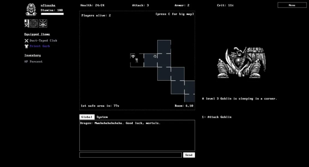 Unchained 将于 3月28日登陆 Abstract Chain。这款链上游戏由 Bizarre Games, Inc. 开发,融合了 20世纪70年代末和80年代初地牢探索游戏的美学,并将其融入大逃杀模式,玩家在每局游戏中都将投入真正的 ETH。